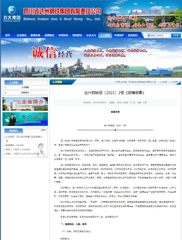 我司在招聘過(guò)程中不收取報(bào)名費(fèi)、中介費(fèi)、手續(xù)費(fèi)、資料費(fèi)等任何費(fèi)用,達(dá)州鋼鐵官網(wǎng)發(fā)布的招聘啟事為本次招聘的唯一宣傳資料,請(qǐng)應(yīng)聘者注意識(shí)別,謹(jǐn)防受騙。對(duì)于發(fā)布虛假招聘信息或在招聘中牟取任何利益的個(gè)人或機(jī)構(gòu),我公司保留追究法律責(zé)任的權(quán)利,招聘舉報(bào)電話(huà):19511804325。