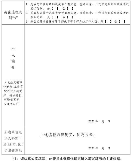 附件:市委組織部2021年度公開考調(diào)工作人員報名表
